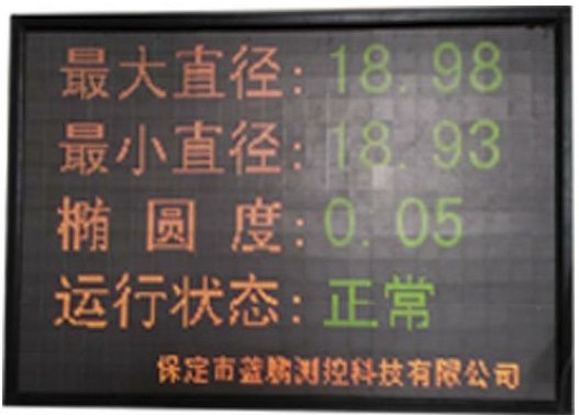 (11)可選配LED顯示屏:現(xiàn)場顯示軋件的實時測量值及設(shè)備運行狀態(tài)。顯示頻率1-3次/秒;