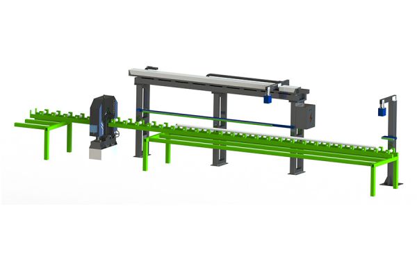 該項目主要檢測精磨銀亮鋼的長度和直徑兩個指標,直徑檢測采用我公司光電測徑儀產(chǎn)品,長度檢測部分采用機器視覺系統(tǒng)。長度檢測部分共設置2臺工業(yè)相機,其中一臺固定位置安裝,測量鋼材定位端;另一臺安裝在直線導軌滑臺的滑塊上,可根據(jù)鋼材長度調(diào)整位置測量鋼材的自由端。直線導軌滑臺采用伺服電機驅(qū)動,滑臺移動距離由測量軟件控制,移動完成后的距離直接計入長度計算系統(tǒng),2臺相機測量的數(shù)據(jù)和滑臺行走數(shù)據(jù)相結合可計算出鋼材的長度。測長系統(tǒng)采用在鋼材側(cè)上方設置的條形光源補光,圓形鋼材反射至工業(yè)相機的光線為一條比較窄的亮線,非常適合高精度測量的補光要求。