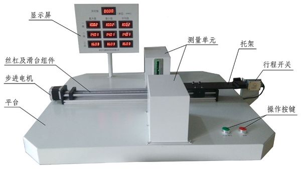 設(shè)備采用光電測頭的寬度和厚度測量原理進(jìn)行測量,測量時(shí)測量光束包覆膠條及其工裝。主要用于測量密封膠條老化前和老化并充分回彈后的膠條尺寸,通過老化前后尺寸的對比判斷膠條的質(zhì)量。